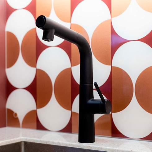 Cмеситель для кухни из коллекции Pure актуального матового черного цвета с отдельным каналом для подачи фильтрованной воды. К Pure можно подключить фильтр любого производителя и наслаждаться чистой водой прямо из смесителя – она удобно включается простым нажатием кнопки на изливе. Отдельное отверстие в мойке под фильтр больше не потребуется.
