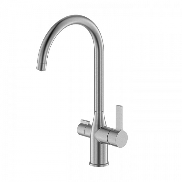 Cатиновый смеситель для кухни Pure с отдельным каналом для подачи фильтрованной воды будет незаменим на современной кухне.