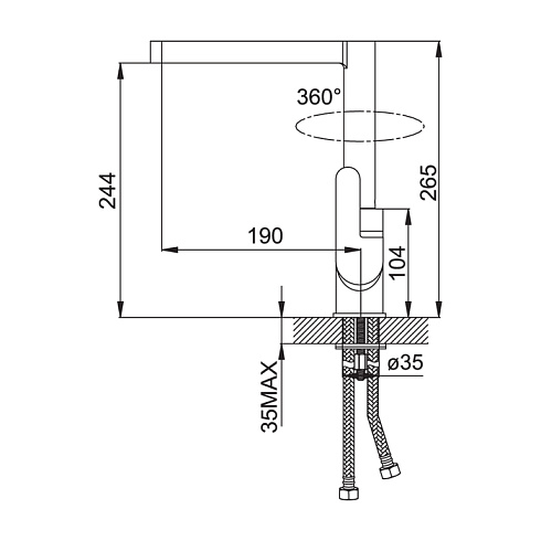 - Тип излива Поворотный L