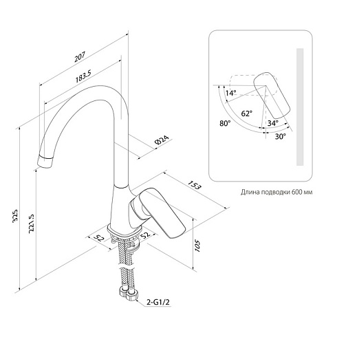 Смеситель для кухни из коллекции Ridge – модный дизайн, который покорит с первого прикосновения. Тонкая и эргономичная ручка удобно ложится в руку, что позволяет комфортно регулировать температурный режим и напор воды. В комплекте гибкая подводка 40 см и комплект крепежа.