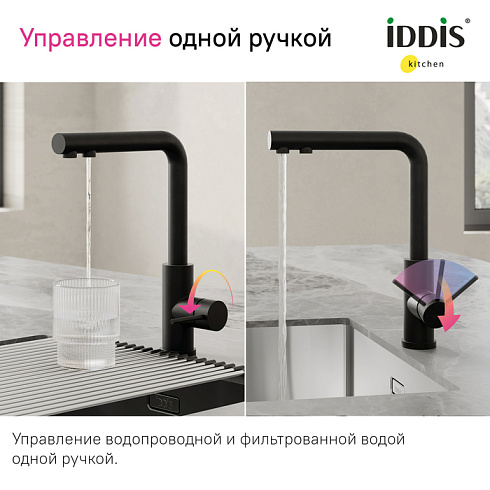 • Изысканная ручка-джойстик – для включения обычной и фильтрованной воды. Чтобы выпить чистой воды, нужно просто повернуть ручку в закрытом состоянии. Угол открывания ручки – 90 градусов (45 – на себя и 45 – от себя).