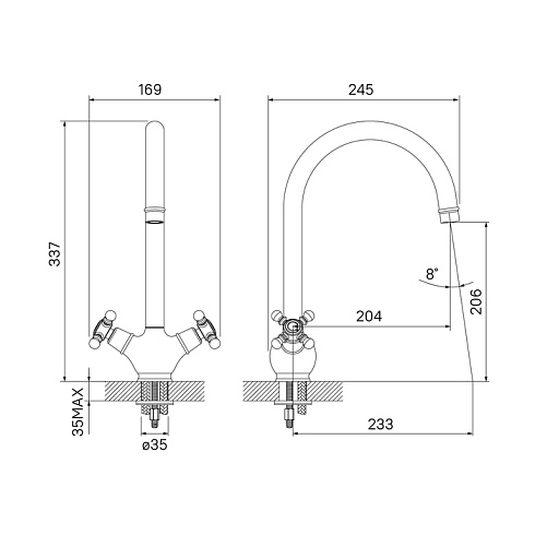 • Высота излива (мм) 206