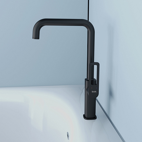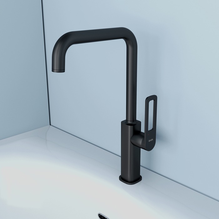 Смеситель для кухни Side в трендовом черном цвете с высоким изливом – стильный, удобный и функциональный помощник на каждой современной кухне. Благодаря поворотному изливу пользоваться им комфортно на любой кухонной мойке.
