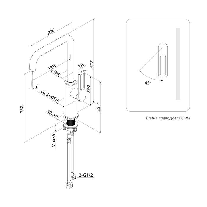 - Тип излива Поворотный L