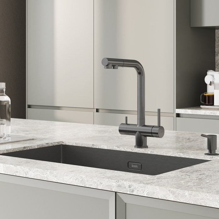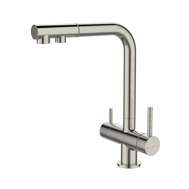 Смеситель Umbra в цвете хром – стильный дизайн и многофункциональность, необходимая на современной кухне. Удобная эргономичная ручка, питьевая вода из отдельного встроенного канала для фильтрованной воды и выдвижной излив – детали, которые сделают ежедневные хлопоты приятными.
