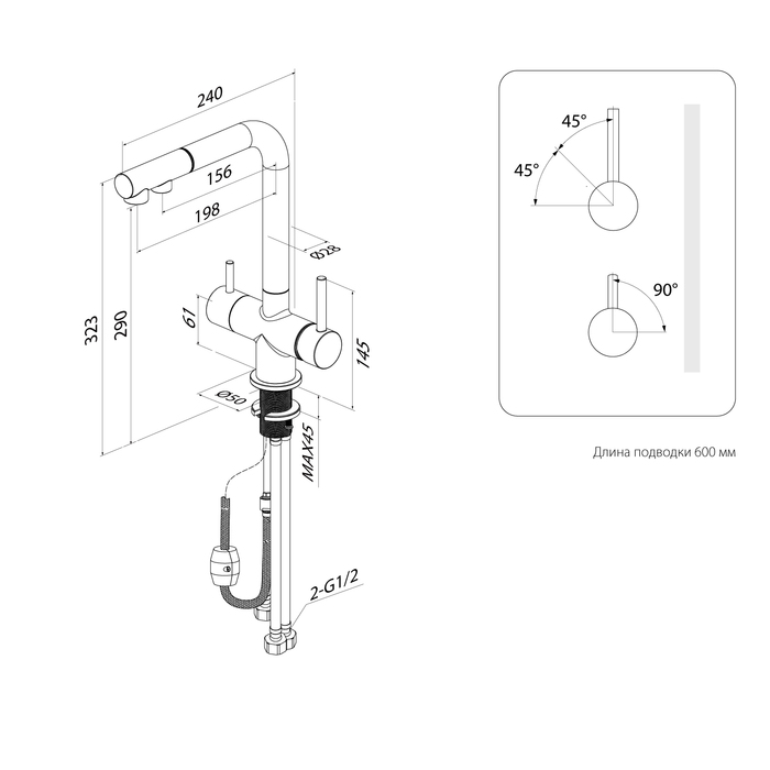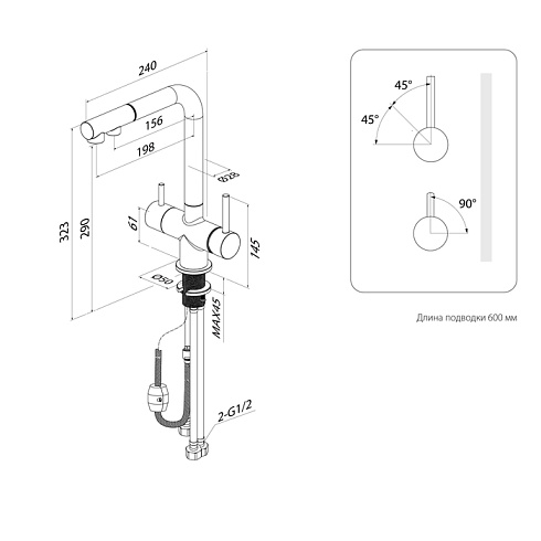 - Тип излива Поворотный L