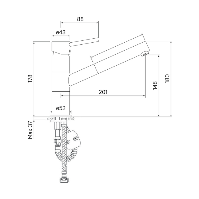 • Высота излива (мм) 148
