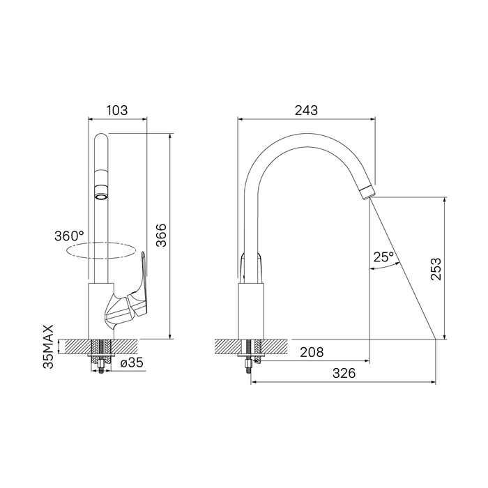 - Тип излива Поворотный J