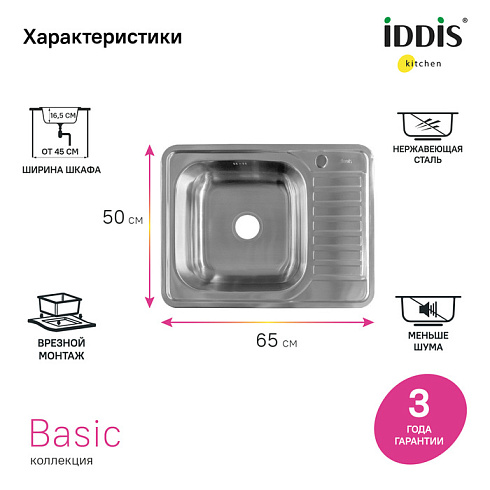 Универсальная мойка Basic – грамотное решение для наполнения эффективного кухонного пространства, отлично подойдет для выполнения повседневных задач на современной кухне. Прямоугольная модель составит комплект с тумбами шириной от 50 см. Крыло слева удобно использовать для сушки столовых приборов. Матовая сатиновая поверхность мойки гармонирует с различной кухонной утварью и аксессуарами.