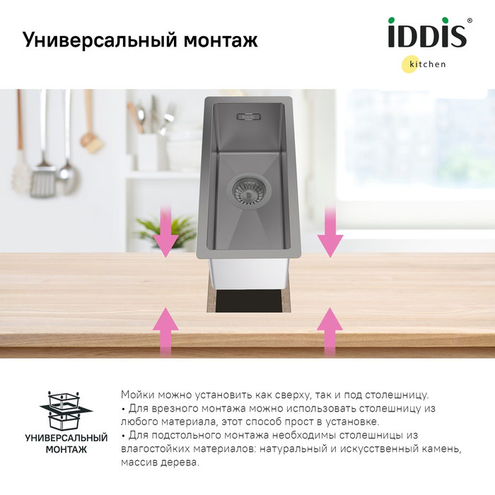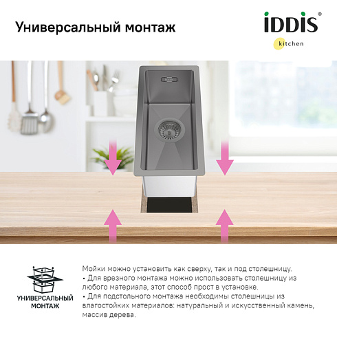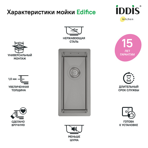 Узкая графитовая мойка Edifice перевернет представление о привычных кухонных мойках благодаря современному дизайну и эргономичности, достойных кухни шеф-повара. Нестандартные размеры 170х400 мм позволяют комбинировать ее с большой мойкой и использовать как вторую чашу: для установки измельчителя, мытья и сушки овощей, фруктов, столовых приборов, для разморозки продуктов.