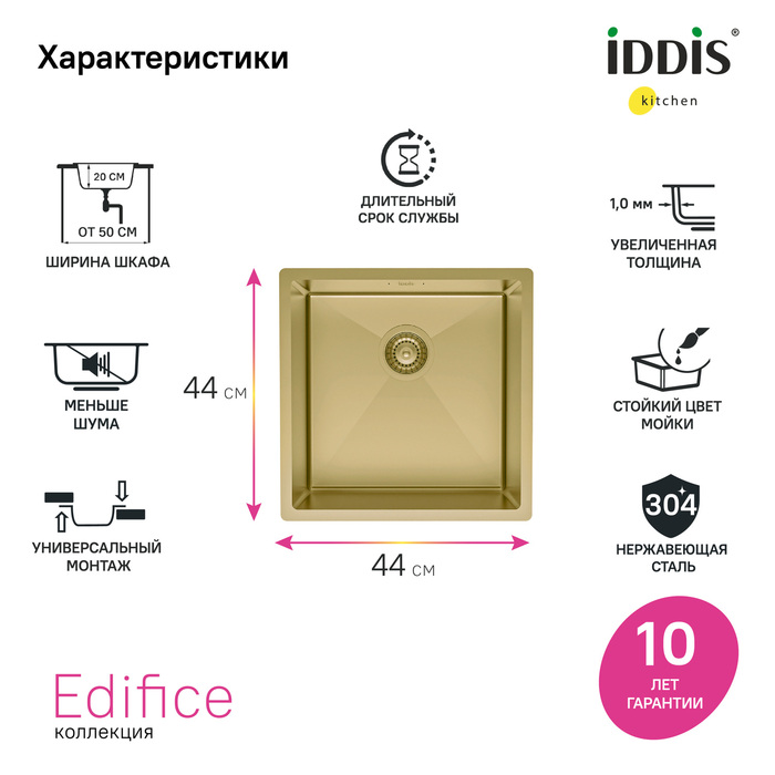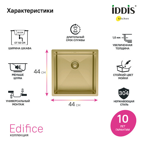 Сатиновая мойка Edifice перевернет представление о привычных мойках благодаря современному дизайну и эргономичности, достойных кухни шеф-повара. Для шкафа от 50 см. Глубина 20 см.