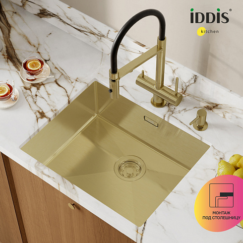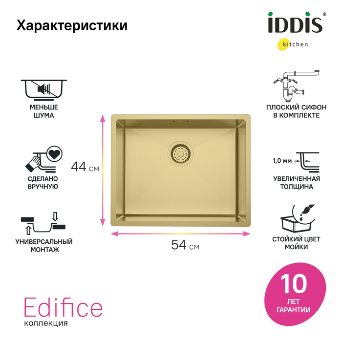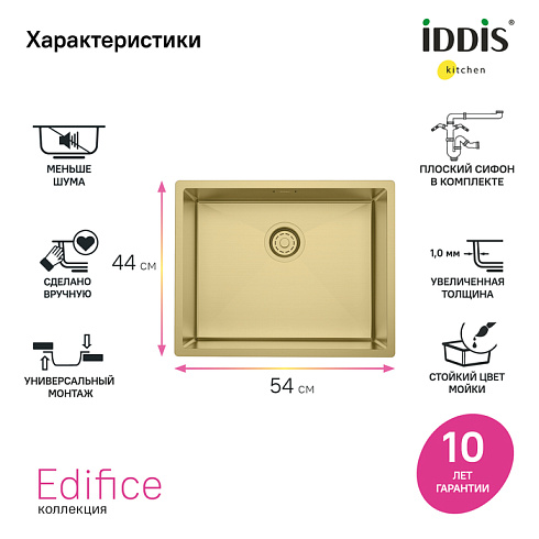 Вместительная золотая мойка Edifice перевернет представление о привычных кухонных мойках благодаря современному дизайну и эргономичности, достойных кухни шеф-повара. Для шкафа шириной от 60 см. Глубина 20 см.
