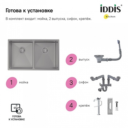 Большая мойка Edifice в цвете графит достойна кухни шеф-повара. Она перевернет представление о привычных кухонных мойках благодаря современному дизайну и эргономичности: у нее 2 полноценные чаши (340х400 мм). Для шкафа шириной от 80 см.