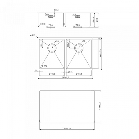 • Произведена ручным способом – для идеальной геометрии с малым радиусом скругления углов, что увеличивает рабочее пространство, и сохранения толщины стального листа. Удобно мыть большое количество посуды и крупные предметы.