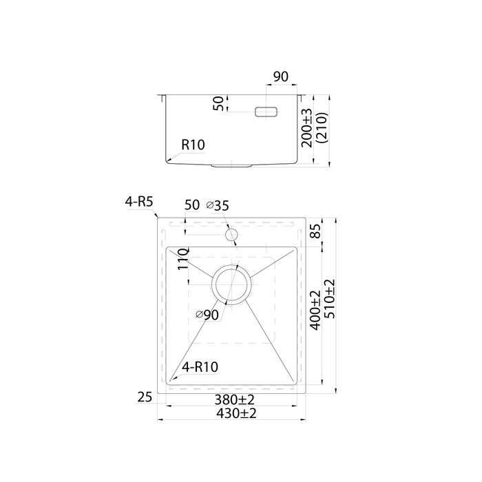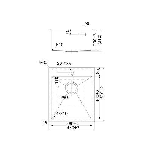 • Подходит для врезного монтажа, подстольный монтаж не предусмотрен. Вырез под мойку составляет 410х490 мм.
