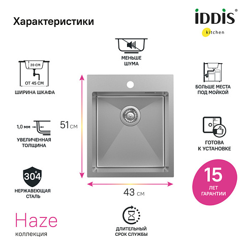 Гарантия на мойки IDDIS® – 15 лет, на выпуск и сифон – 1 год.