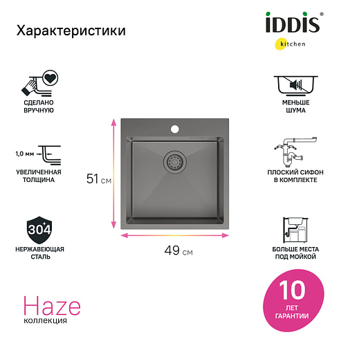 Гарантия на мойки IDDIS® – 10 лет, на выпуск и сифон – 1 год.