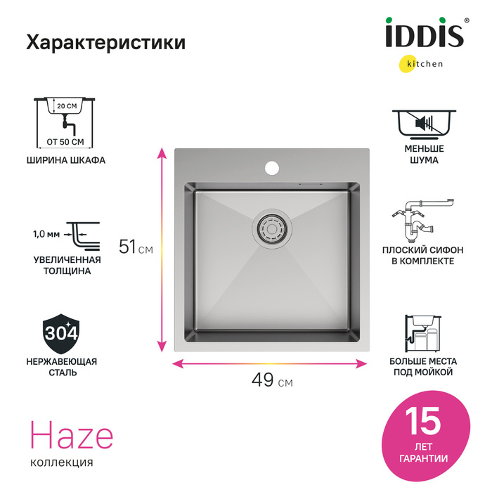 Гарантия на мойки IDDIS® – 15 лет, на выпуск и сифон – 1 год.