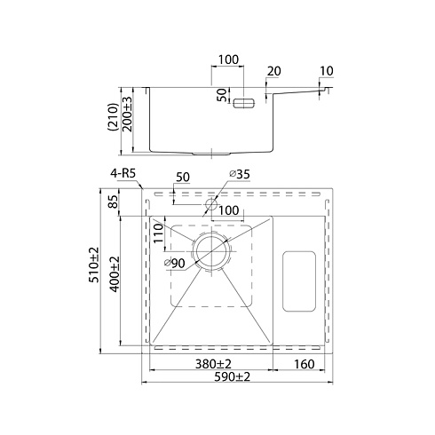 • Подходит для врезного монтажа, подстольный монтаж не предусмотрен. Вырез под мойку составляет 570х490 мм.