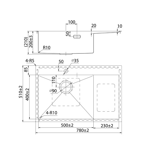 • Подходит для врезного монтажа, подстольный монтаж не предусмотрен. Вырез под мойку составляет 760х490 мм.