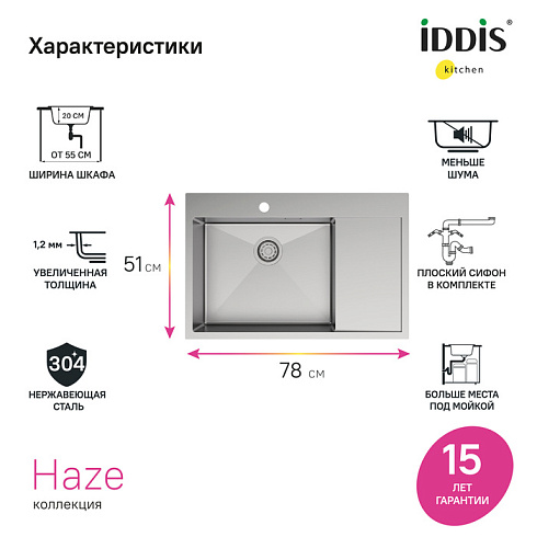 Гарантия на мойки IDDIS® – 15 лет, на выпуск и сифон – 1 год.