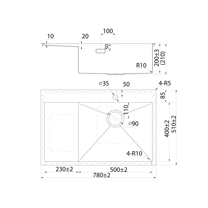 • Подходит для врезного монтажа, подстольный монтаж не предусмотрен. Вырез под мойку составляет 760х490 мм.