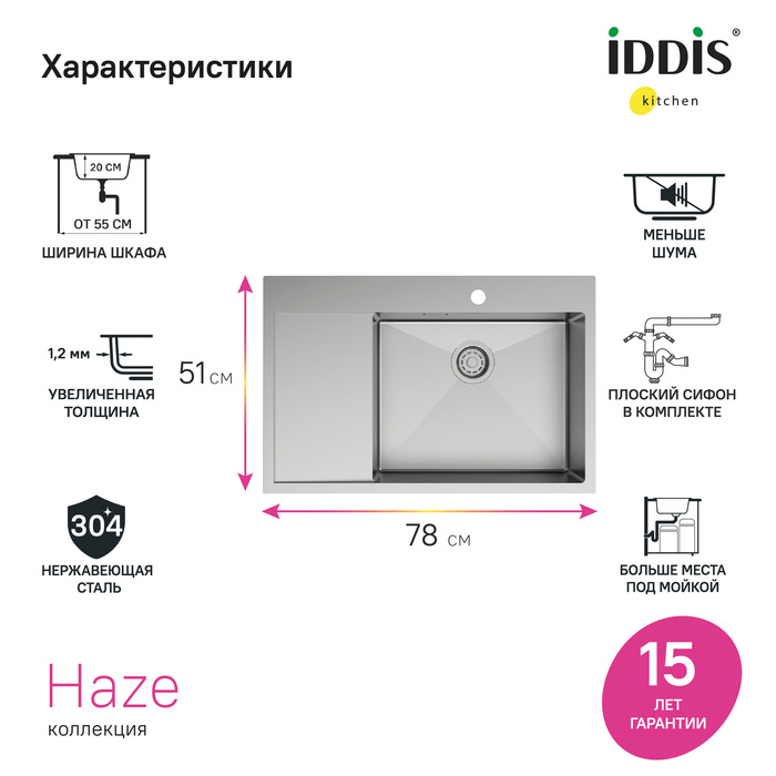 Гарантия на мойки IDDIS® – 15 лет, на выпуск и сифон – 1 год.