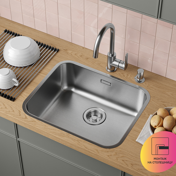 • Востребованный размер: мойка поместится в любой кухонный гарнитур от 60 см.