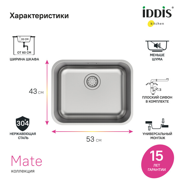 Гарантия на мойки IDDIS® – 15 лет, на выпуск, крепления и сифон – 1 год.