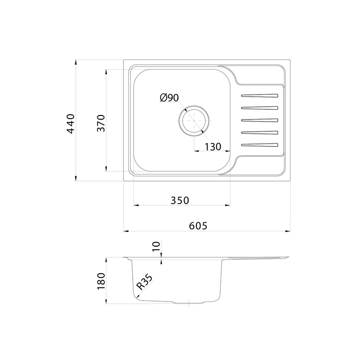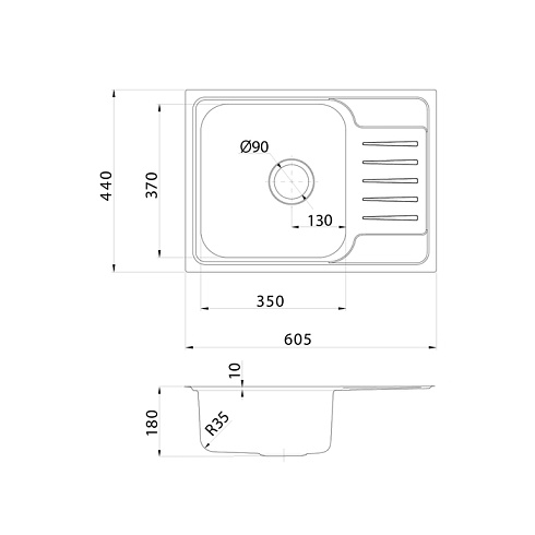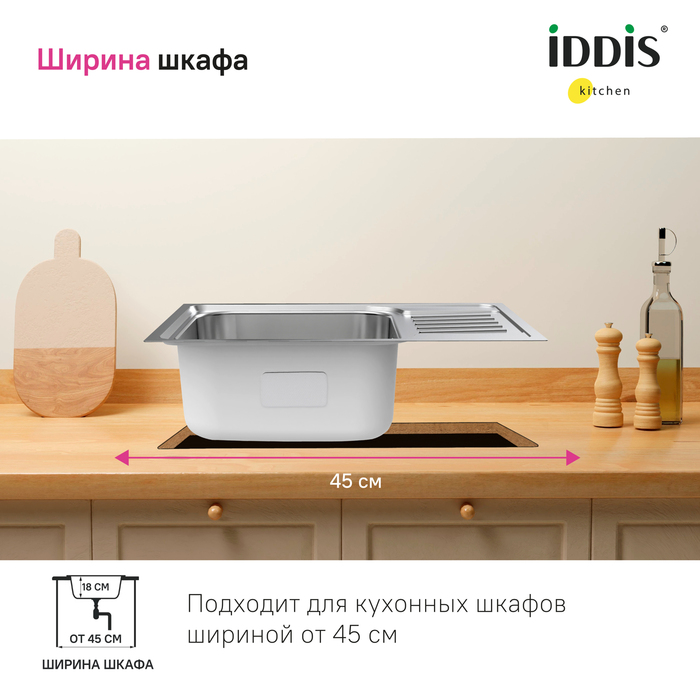 Мойка Sound – функциональность и актуальный дизайн, который подойдет почти к любой кухне. Крыло удобно использовать для сушки столовых приборов. Для шкафа от 45 см.