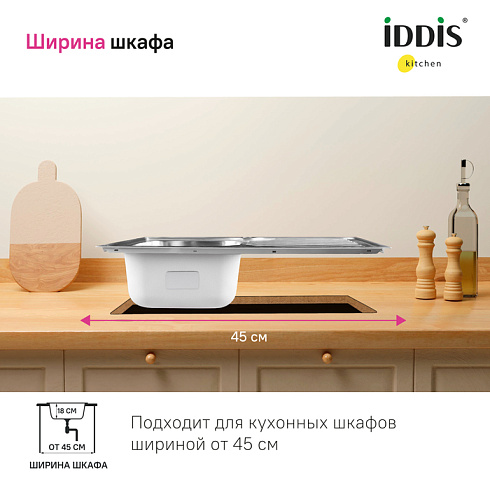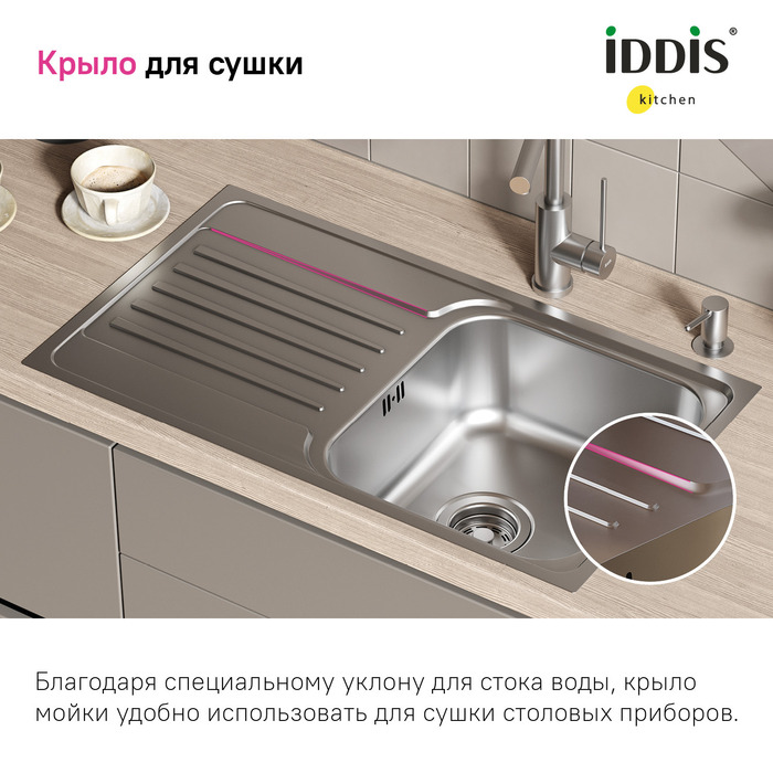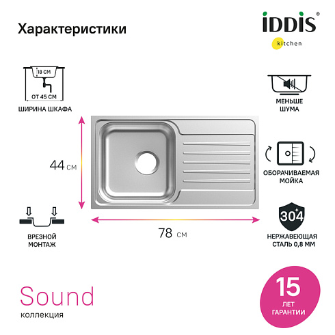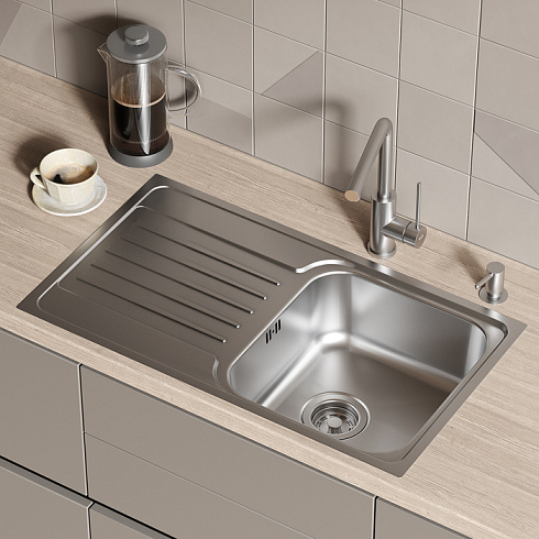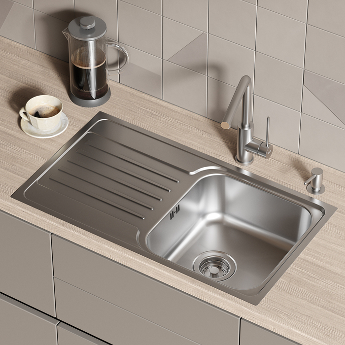 Мойка Sound – функциональность и актуальный дизайн, который подойдет почти к любой кухне. Крыло удобно использовать для сушки столовых приборов. Для шкафа от 45 см.