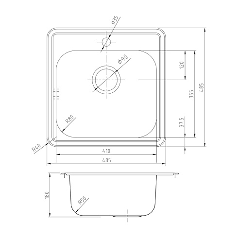 • Все необходимое для монтажа в комплекте: крепления для врезного монтажа (вырез под мойку составляет 470х470хR35 мм), шаблон для выреза в столешнице и эластичная уплотнительная лента для защиты от протечек. Подстольный монтаж не предусмотрен.