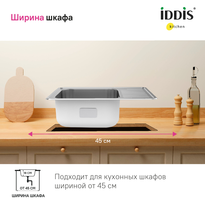 Мойка Strit из популярной коллекции удобных кухонных моек разной функциональности. Имеет компактное крыло с геометричным узором – для размораживания продуктов и сушки столовых приборов. Подходит к тумбе от 45 см.