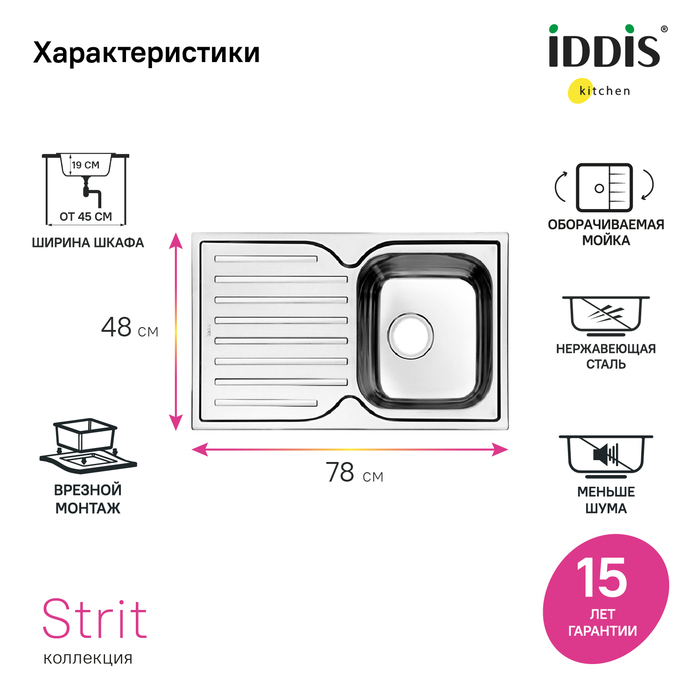 • Гарантия на мойки IDDIS® – 15 лет, на крепления – 1 год.