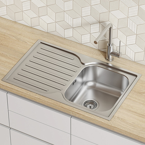 Мойка Strit из популярной коллекции удобных кухонных моек разной функциональности. Имеет компактное крыло с геометричным узором – для размораживания продуктов и сушки столовых приборов. Подходит к тумбе от 45 см.