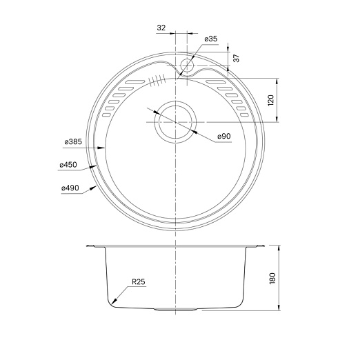 • Диаметр сливного отверстия (мм) 90