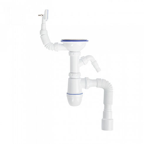 • Сифон с отдельным отводом для стиральной/посудомоечной машины с обратным клапаном и гофрированными отводами для удобства подключения.