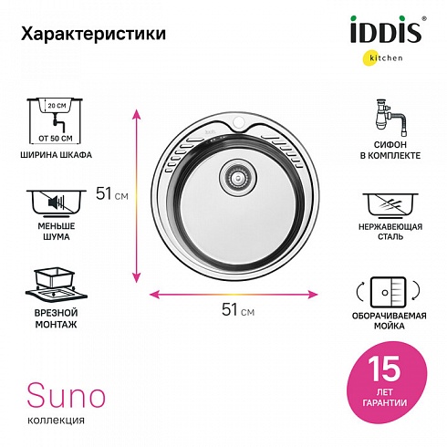 Гарантия на стальные мойки IDDIS® – 15 лет, на сифон, крепления и выпуск – 1 год.
