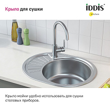 Мойка Suno для тех, кто предпочитает классику: округлые очертания чаши и эстетичный веерообразный узор крыла. Отлично подойдет для небольших кухонь, где на счету каждый рабочий сантиметр. На крыле удобно сушить столовые приборы. Имеет текстуру с эффектом шелковой поверхности благодаря специальной обработке стали.