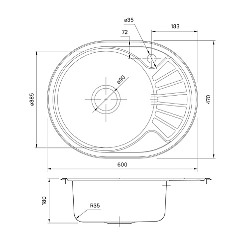 • Специальное антишумовое покрытие и полимерные накладки на оборотной стороне чаши снижают шум при использовании мойки.
