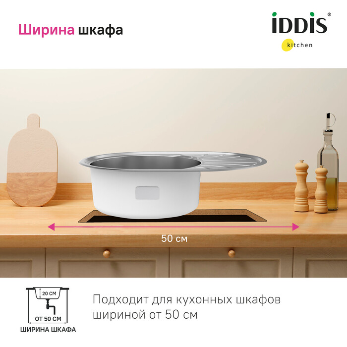 • Монтаж максимально удобен и универсален: мойка устанавливается сверху в столешницу крылом налево или направо.