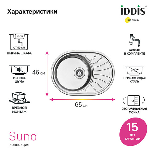 • Гарантия на мойку Suno – 15 лет, на крепления и сифон – 1 год.