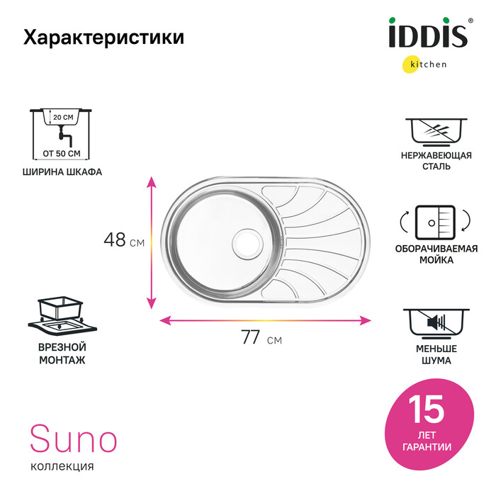 Мойка врезного монтажа, SUN77SDi77