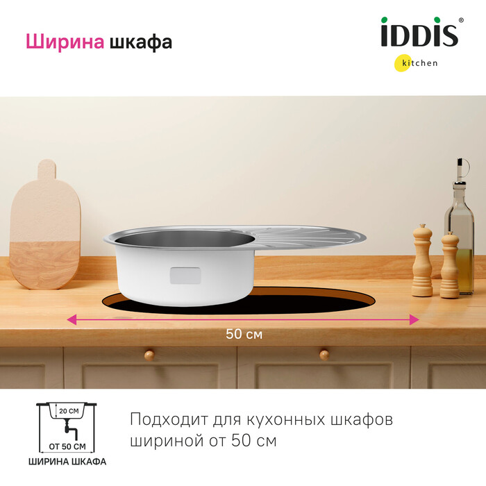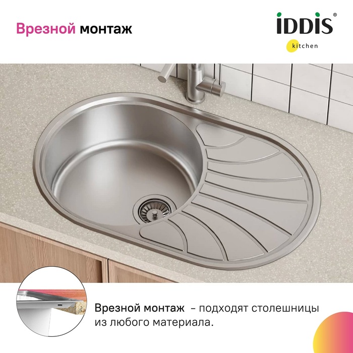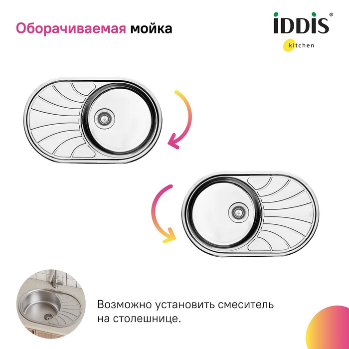 • Монтаж максимально удобен и универсален: мойка устанавливается сверху в столешницу крылом налево или направо.