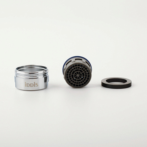 Аэратор IDDIS® представляет собой сетчатую насадку на смеситель, предназначенную для насыщения воды кислородом без заметного снижения напора струи. Рисунок нижней сетки типа «соты» обеспечивает высокую шумоизоляцию и лучшее распределение потока, не позволяя брызгам воды заливать пространство вокруг. Аэратор IDDIS® дает возможность улучшить качество воды за счет фильтрации крупных нежелательных частиц и примесей, сделать ее менее хлорированной. Модель подходит для комплектации смесителей для ванны любых производителей с внутренней резьбой крана диаметром 24 мм. Корпусный аэратор имеет декоративный внешний вид и устанавливается с помощью гайки (входит в комплект).