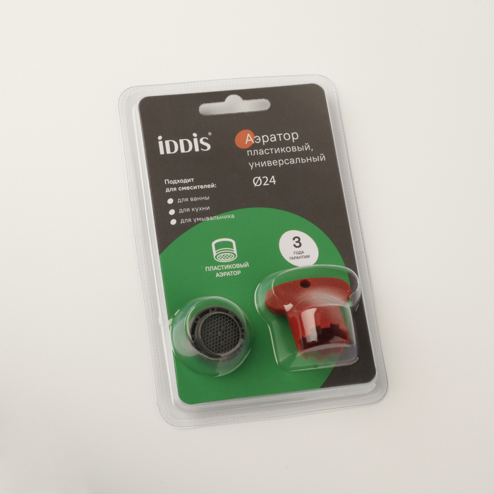 Встраиваемый аэратор IDDIS® представляет собой сетчатую насадку на смеситель, предназначенную для насыщения воды кислородом без заметного снижения напора струи. Рисунок нижней сетки типа «соты» обеспечивает высокую шумоизоляцию и лучшее распределение потока, не позволяя брызгам воды заливать пространство вокруг. Аэратор IDDIS® дает возможность улучшить качество воды за счет фильтрации крупных нежелательных частиц и примесей, сделать ее менее хлорированной. Модель подходит для комплектации смесителей IDDIS® с внутренней резьбой крана диаметром 24 мм. Изделие устанавливается непосредственно в корпус смесителя без дополнительных монтажных гаек, что обеспечивает красивый и минималистичный внешний вид смесителя.