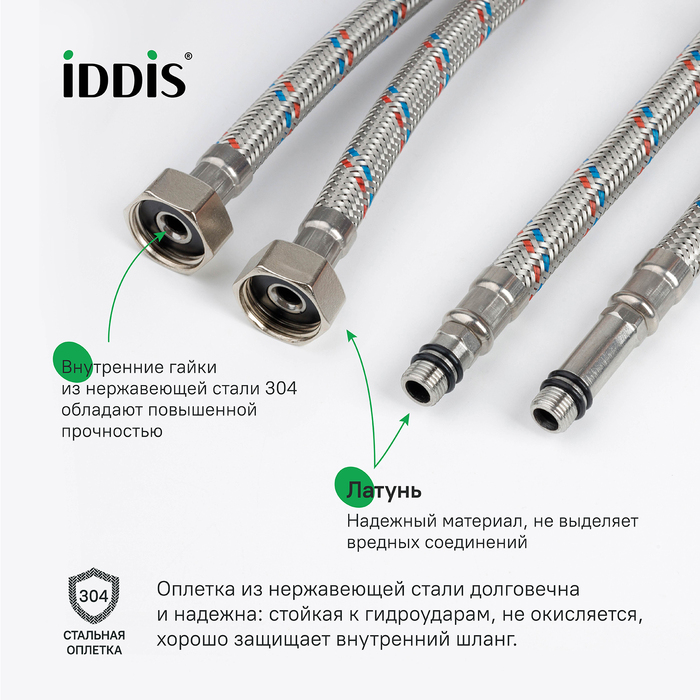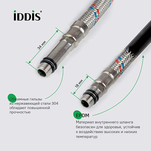 Гарантия на гибкую подводку IDDIS® – 5 лет.