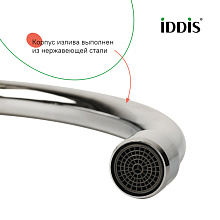 • Хромированное покрытие излива IDDIS® устойчиво к появлению царапин и потускнению (при должном уходе). На протяжении многих лет он будет выглядеть как новый.