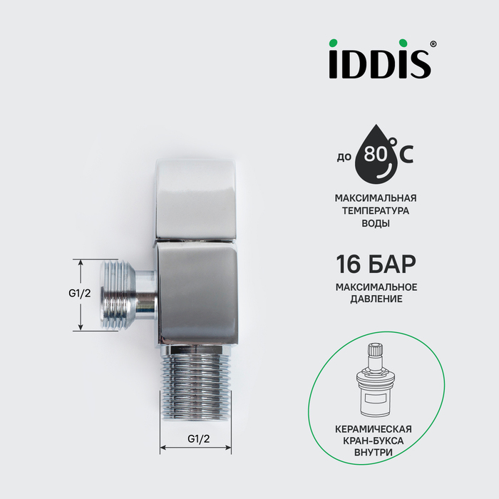 Угловой кран для подключения сантехприборов выполнен из надежной латуни и имеет кран-буксу внутри, которая не закисает и подвижна даже при редком использовании, обеспечивая плавность и легкость поворота ручки.
