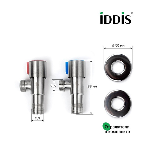 Комплект из двух угловых кранов для подключения сантехприборов. Сделаны из нержавеющей стали и имеют кран-буксу внутри, которая не закисает и подвижна даже при редком использовании, обеспечивая плавность и легкость поворота ручки.